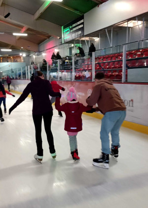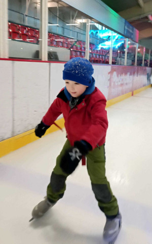 Die nächsten zwei Stunden waren purer Spaß! Die Großen haben Ticken gespielt, während die Kleineren mit Robben und Unterstützung das Eis erobert haben. Zum Glück waren noch nicht so viele Leute da, sodass wir viel Platz auf der Eisfläche hatten. Fast ohne Pausen haben wir unsere Runden auf dem Eis gedreht, mal in die eine und dann wieder in die andere Richtung. Die zwei Stunden gingen sehr schnell vorbei und wir haben uns alle getroffen, uns umgezogen und sind wieder raus gegangen.